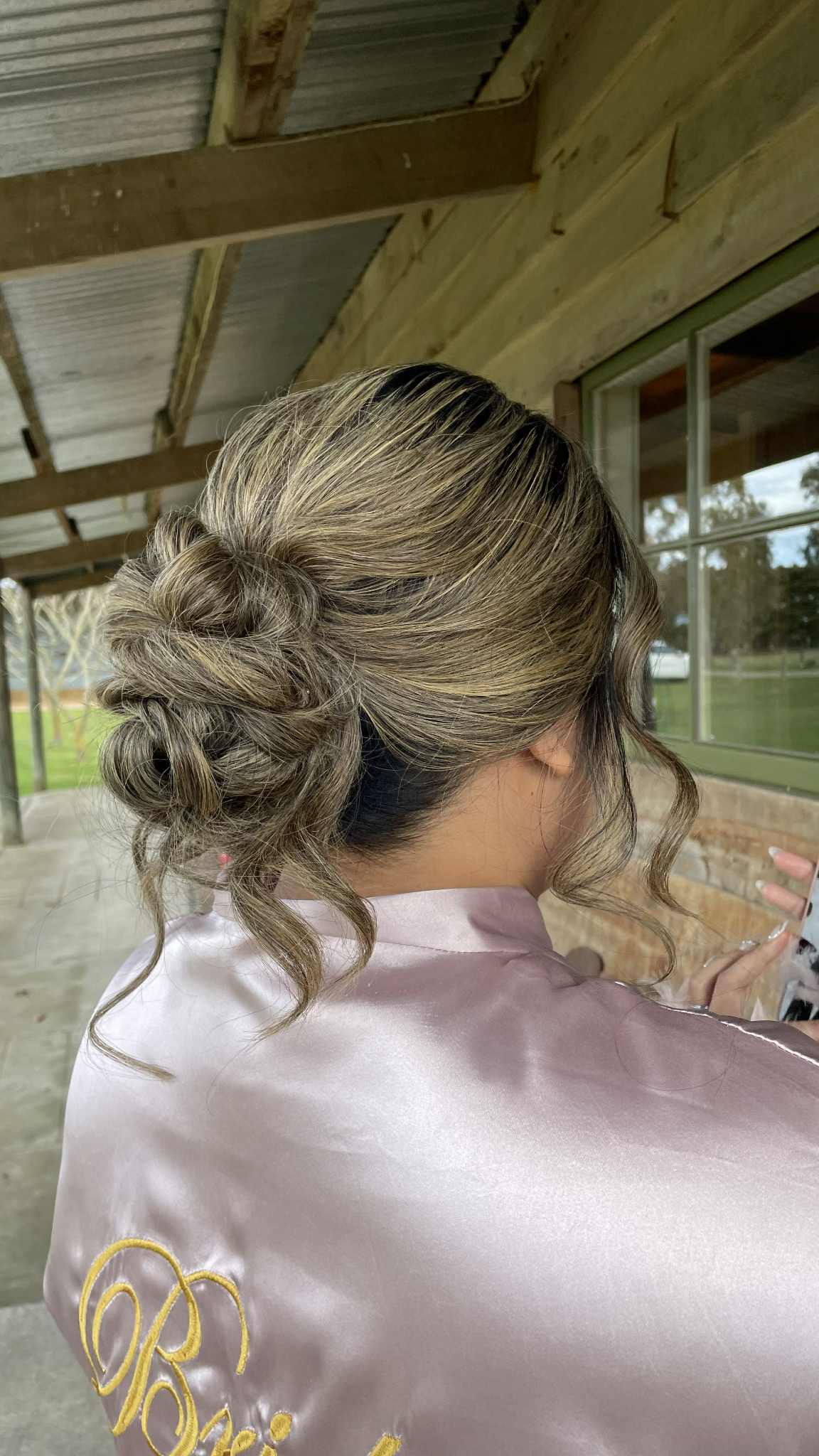 With over four and a half years in the hair industry, I’ve found my passion in creating beautiful, romantic wedding and special event hairstyles that bring each client’s vision to life. I love being creative and working closely with my clients to transform styles they never thought they could achieve into dreamy, effortless looks that make them feel their absolute best on their special day.